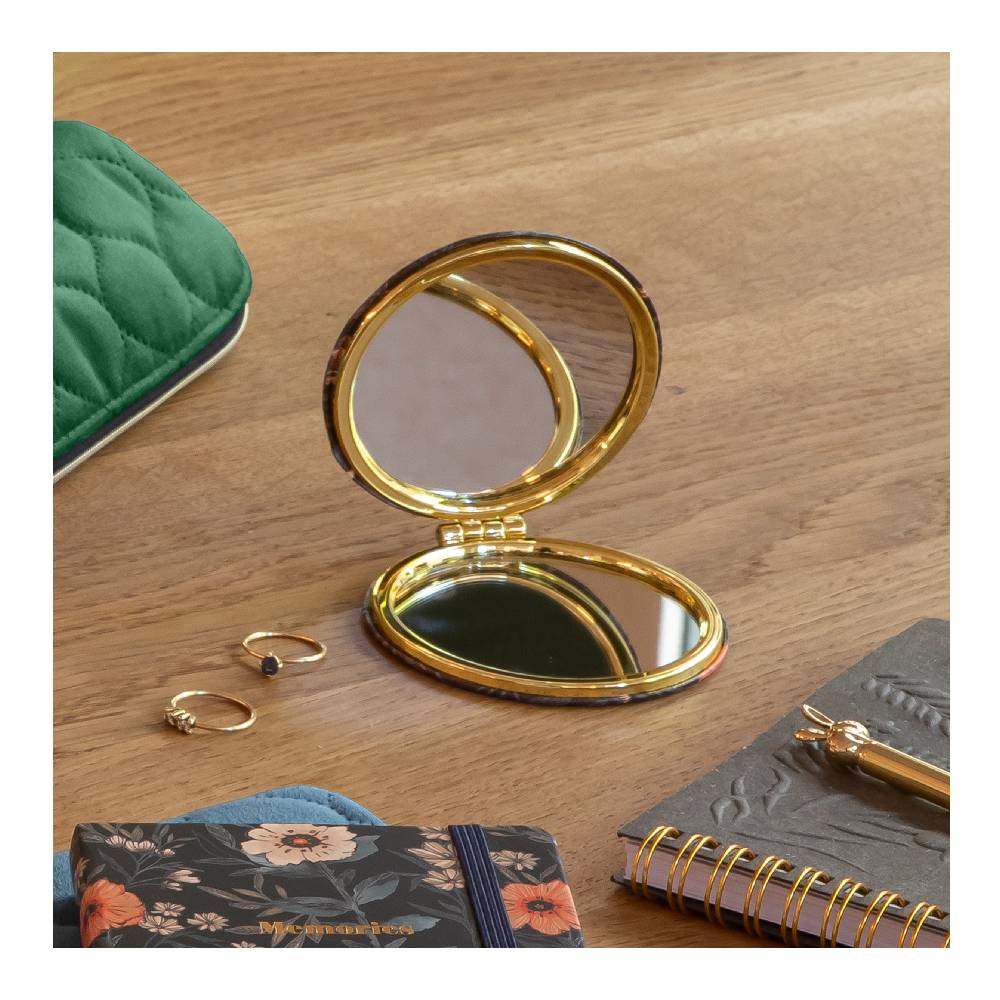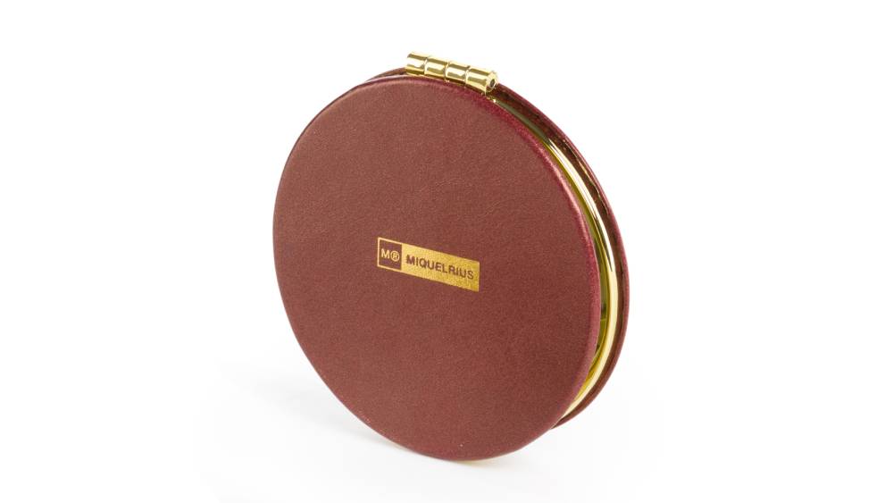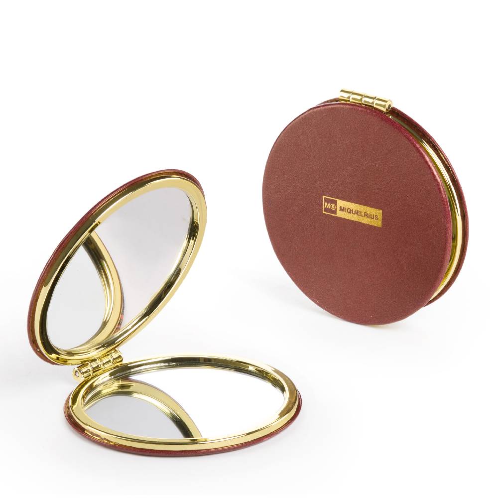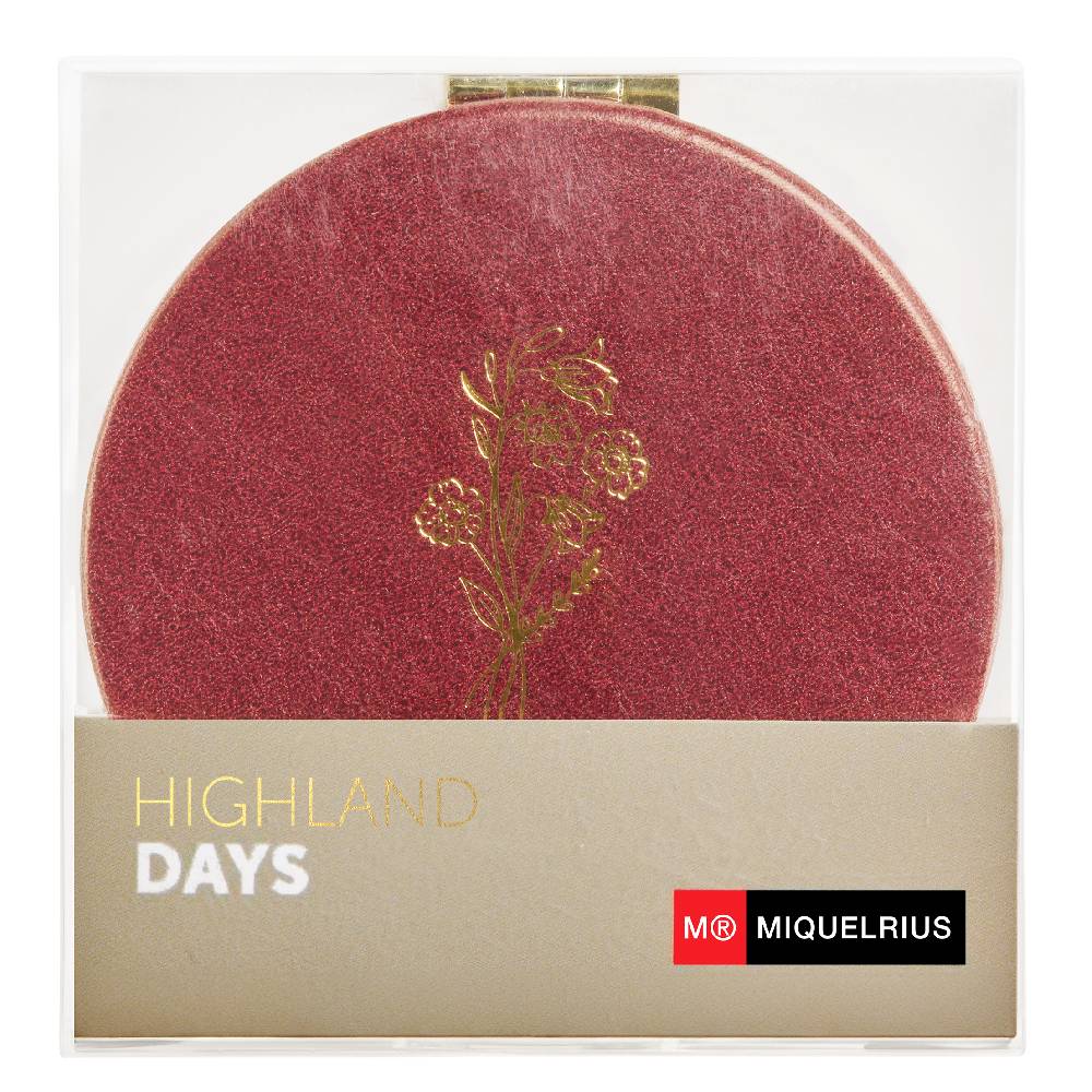 Miquelrius kerek tükör, 8 cm, bordó, arany virágcsokor, Highland