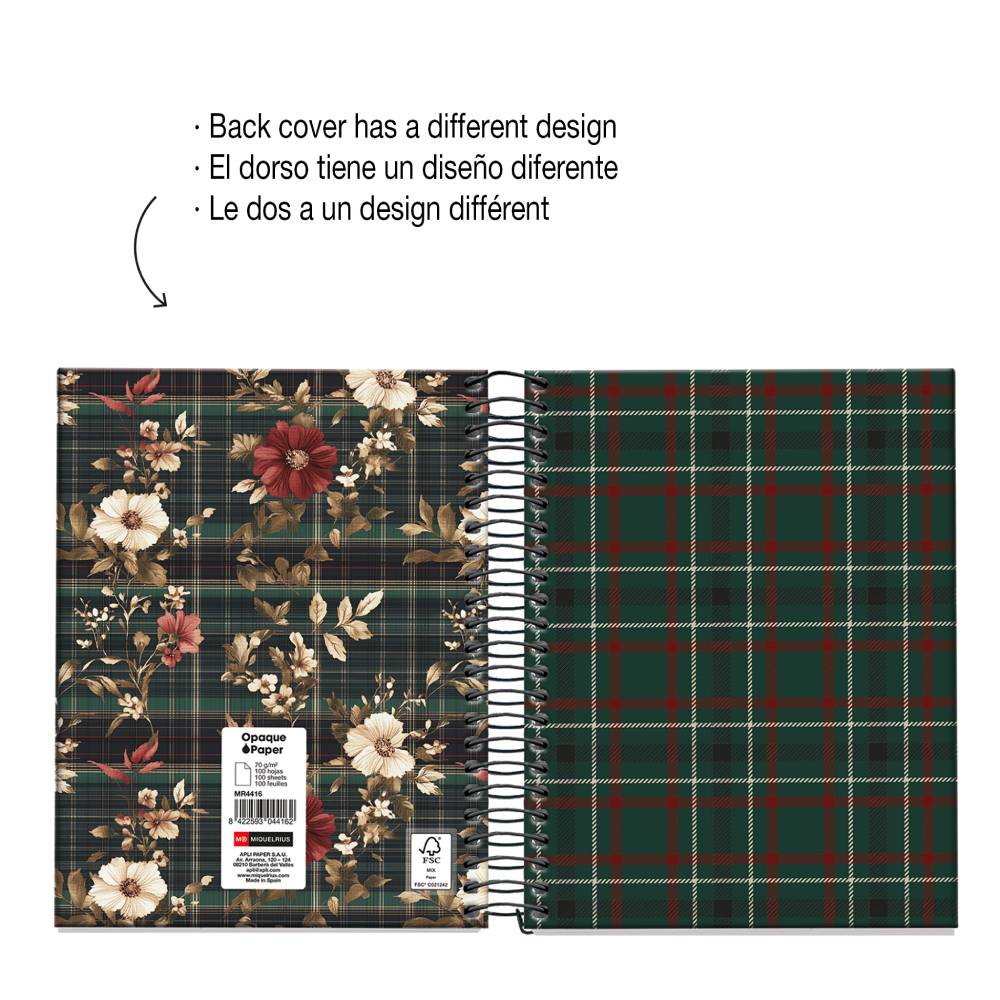 Miquelrius spirálfüzet, A6, 100 lap, sima, színregiszteres, keményfedeles Highland-virágos