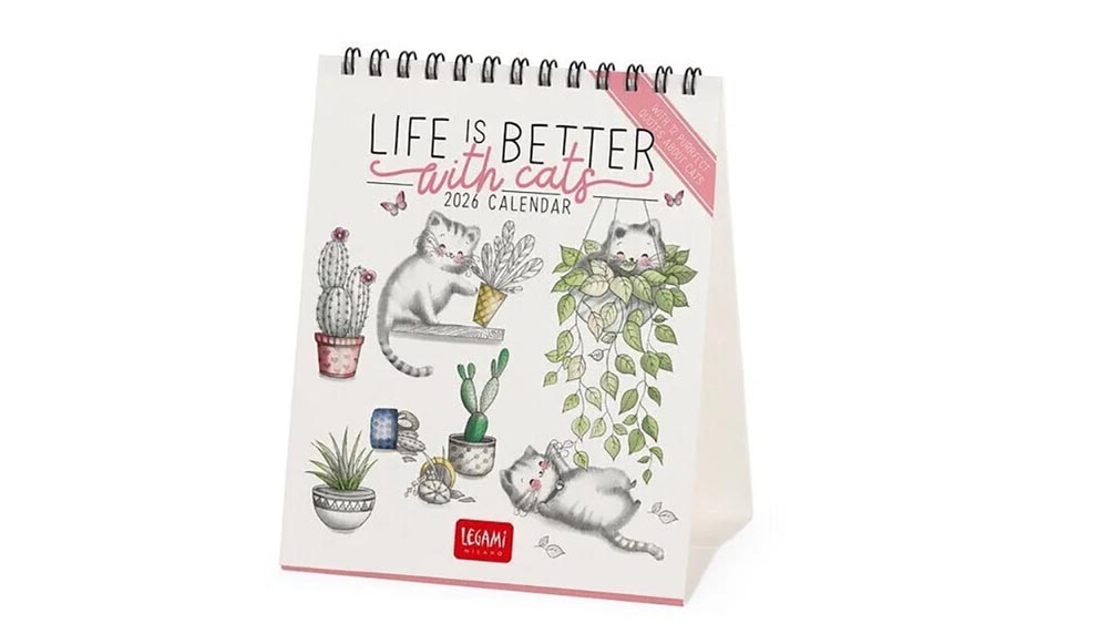 LEGAMI asztali naptár, 12x14.5 cm, rajzolt cicás, 2026