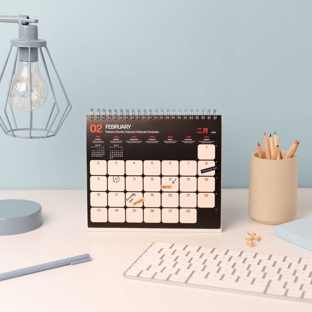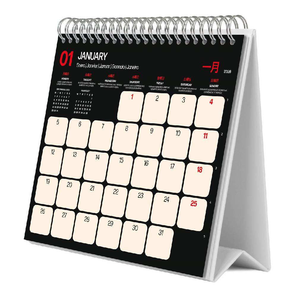 - 12 hónapos, spirálkötéses asztali naptár (januártól decemberig)