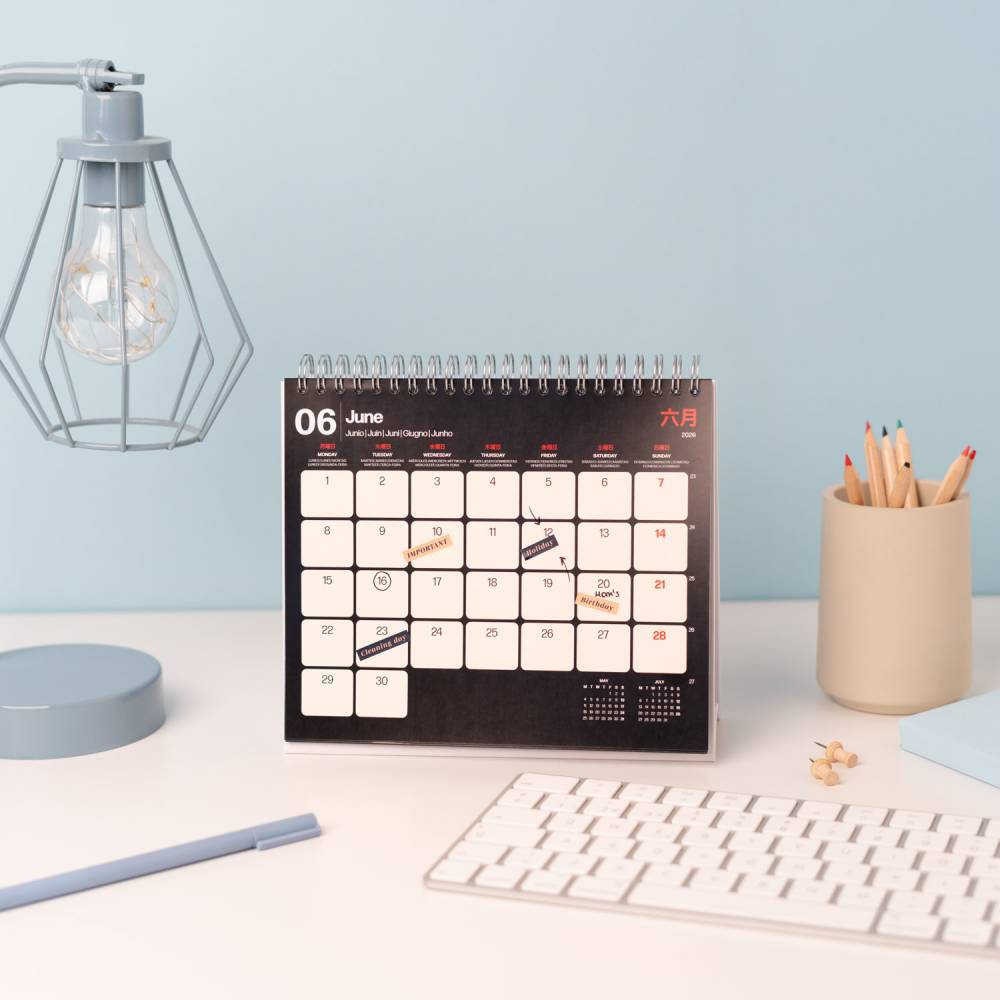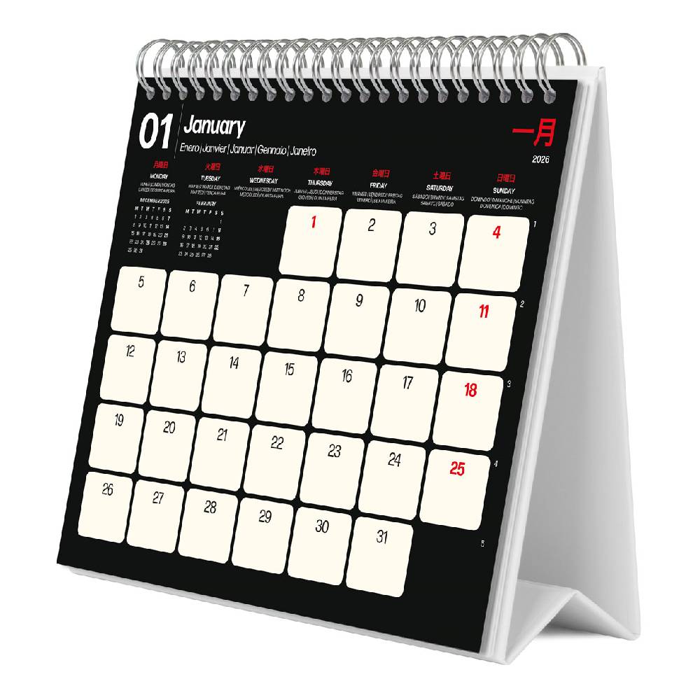 - 12 hónapos, spirálkötéses asztali naptár (januártól decemberig)