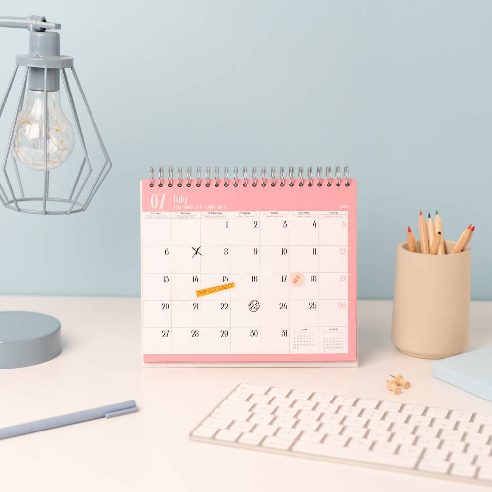 - 12 hónapos, spirálkötéses asztali naptár (januártól decemberig)