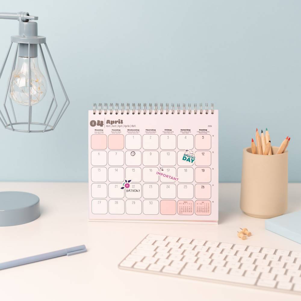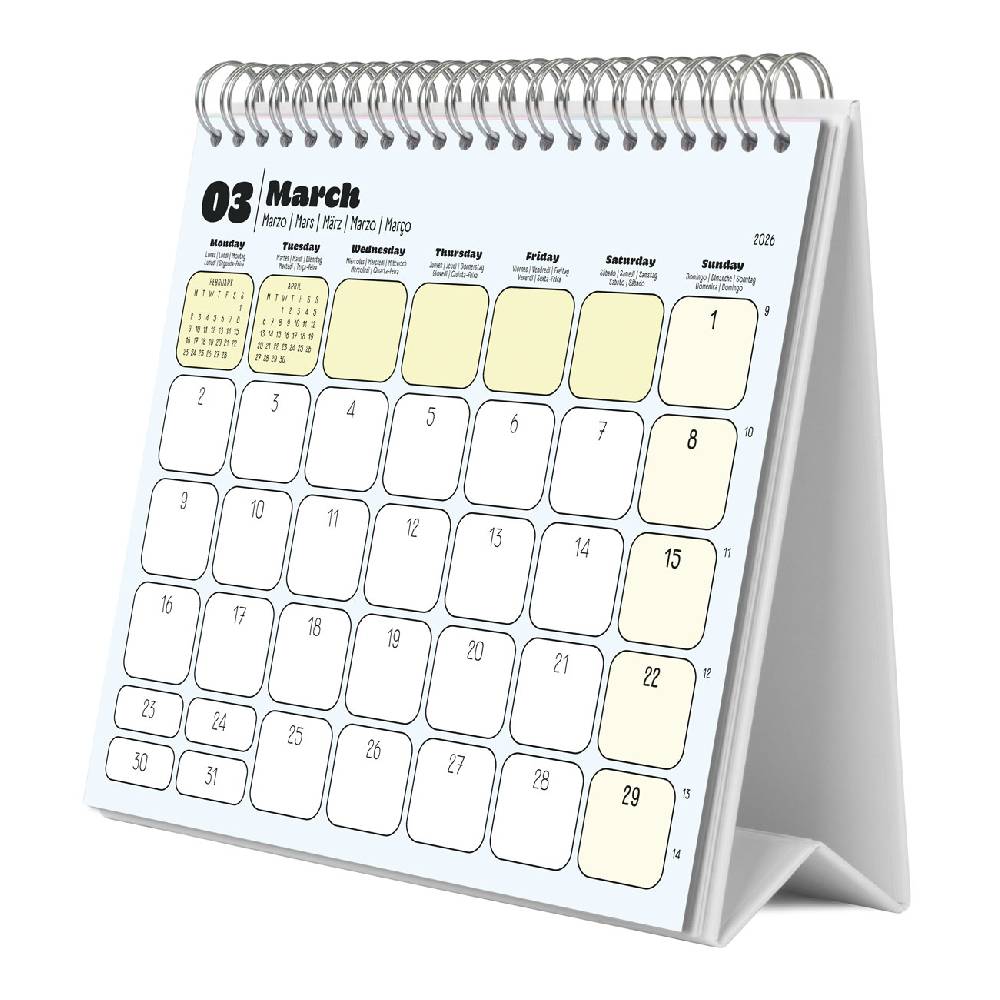 - 12 hónapos, spirálkötéses asztali naptár (januártól decemberig)