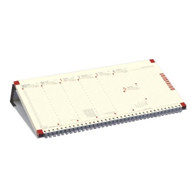 - Fekvő tartóval (a gerincen olasz műbőrrel) forgalmazott chamois (krémszínű) tömbös, asztali naptár, perforált jegyzetrésszel