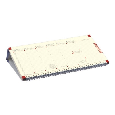 - Fekvő tartóval (a gerincen olasz műbőrrel) forgalmazott chamois (krémszínű) tömbös, asztali naptár, perforált jegyzetrésszel