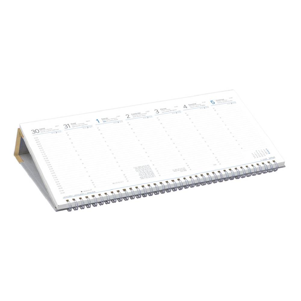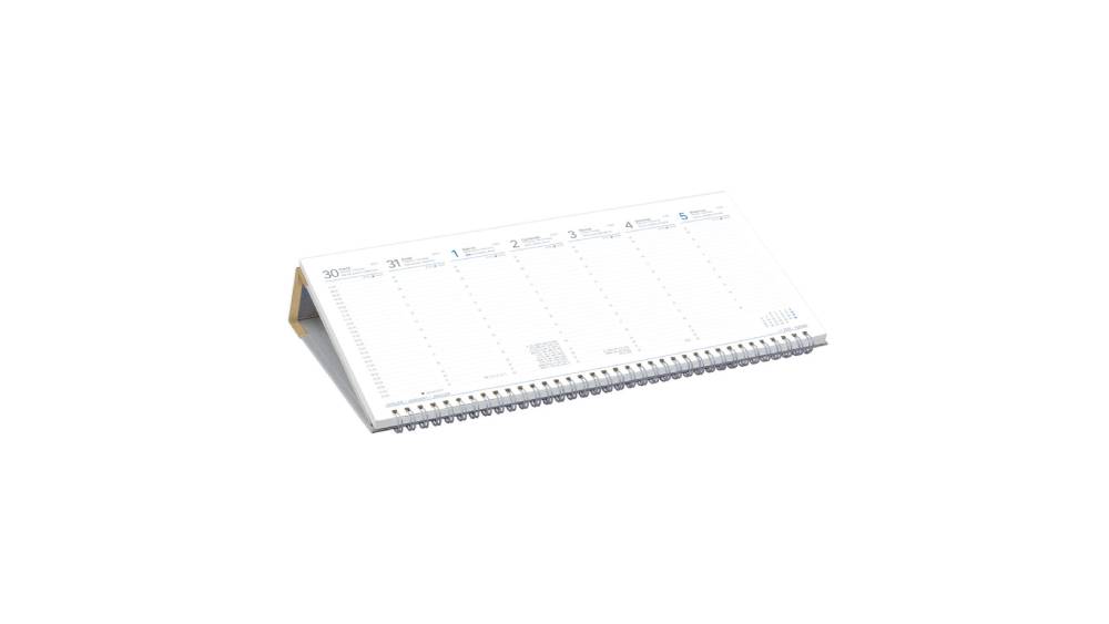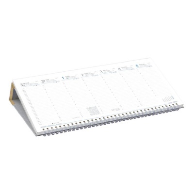 - Műbőrrel bevont tartóval forgalmazott fehér tömbös, fekvő asztali naptár