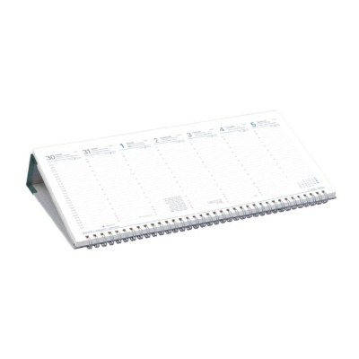 - Műbőrrel bevont tartóval forgalmazott fehér tömbös, fekvő asztali naptár