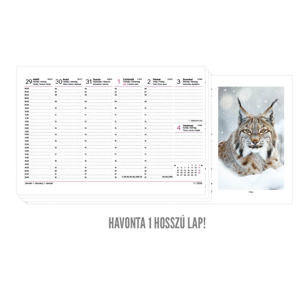 - A tömb rövid és hosszú lapokat is tartalmaz: havonta 1 hosszú lap