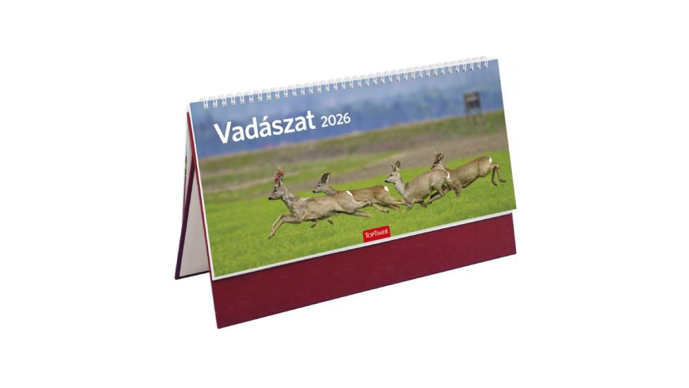 TopTimer T054 VADÁSZAT Álló asztali naptár 2026, BORDÓ