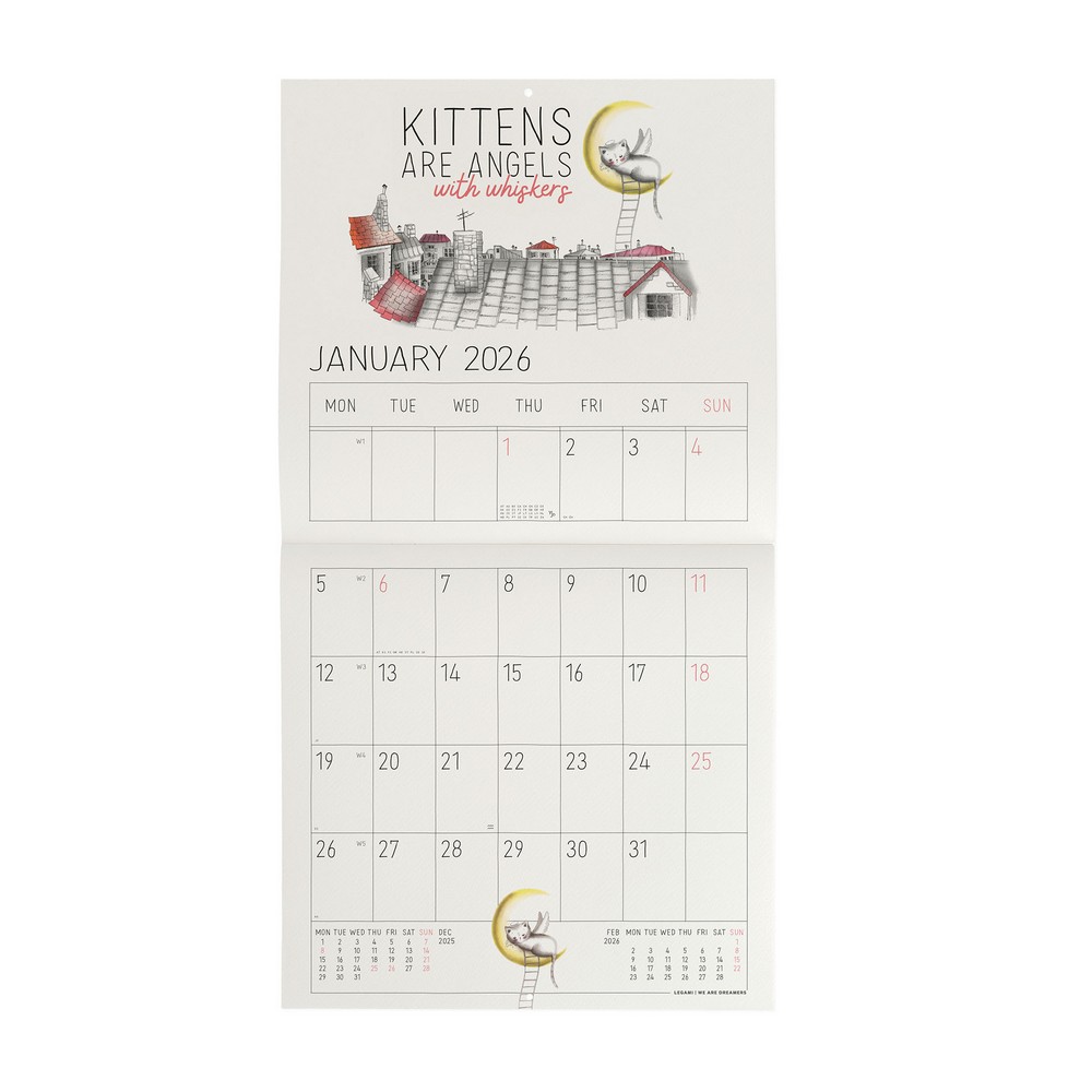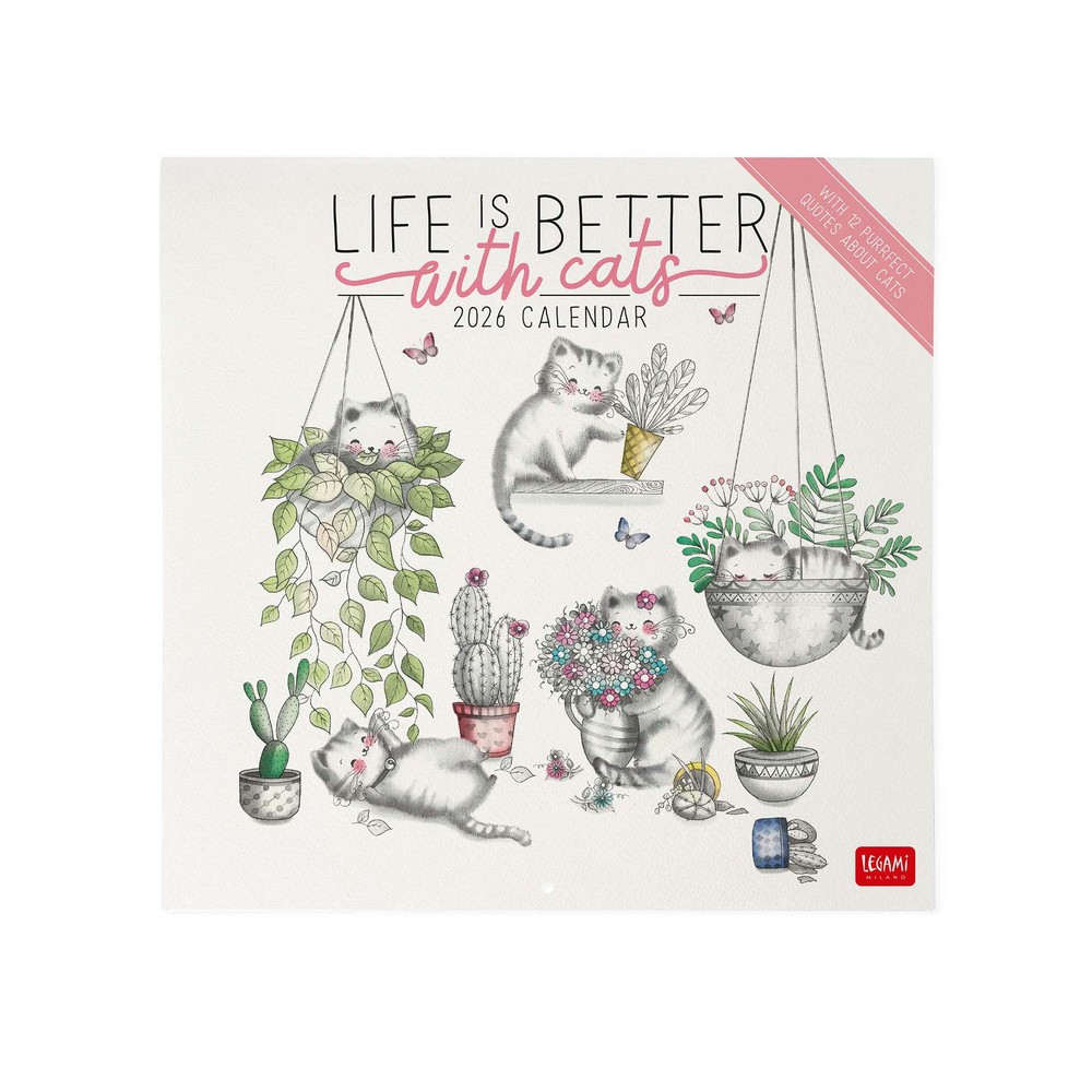 Legami falinaptár, 30x29 cm, rajzolt cicás, 2026