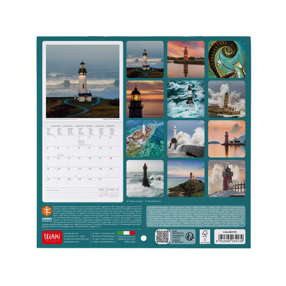 Legami falinaptár, 18x18cm, világítótornyok, 2026