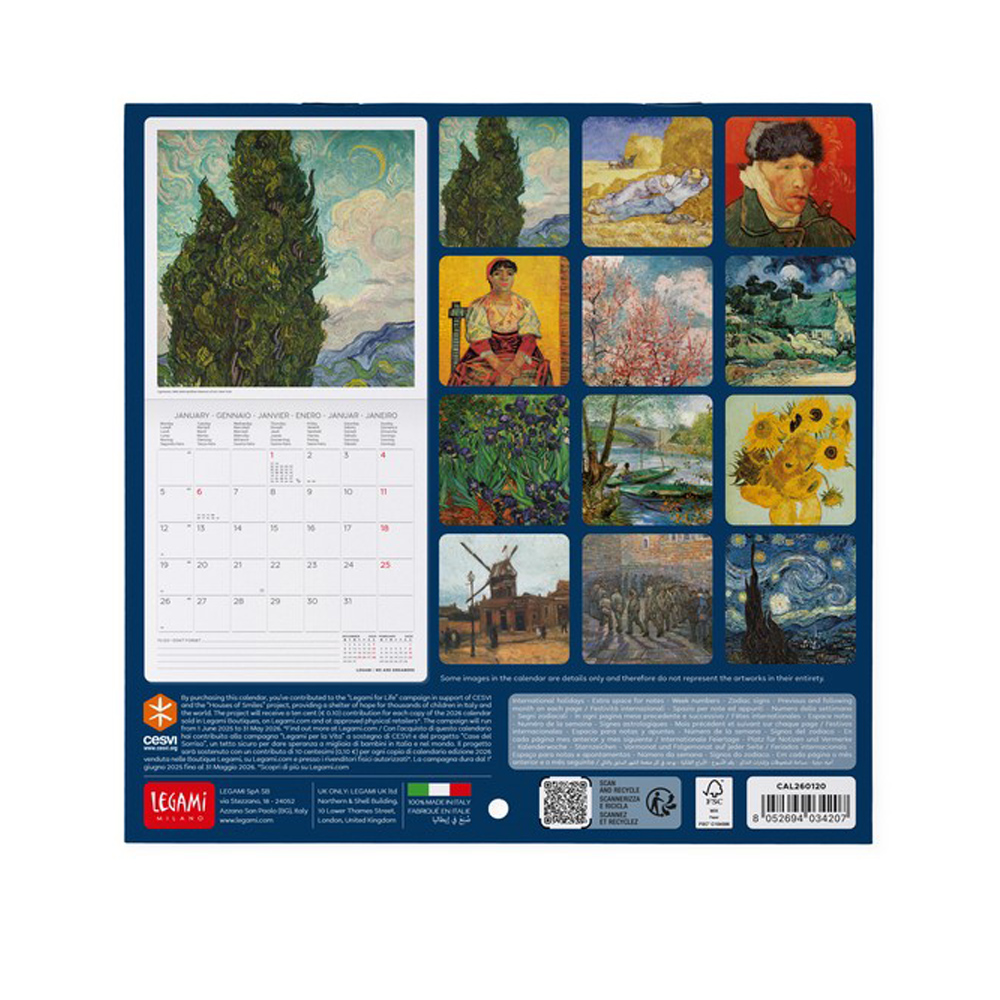 Legami falinaptár, 18x18 cm, Vincent Van Gogh, 2026