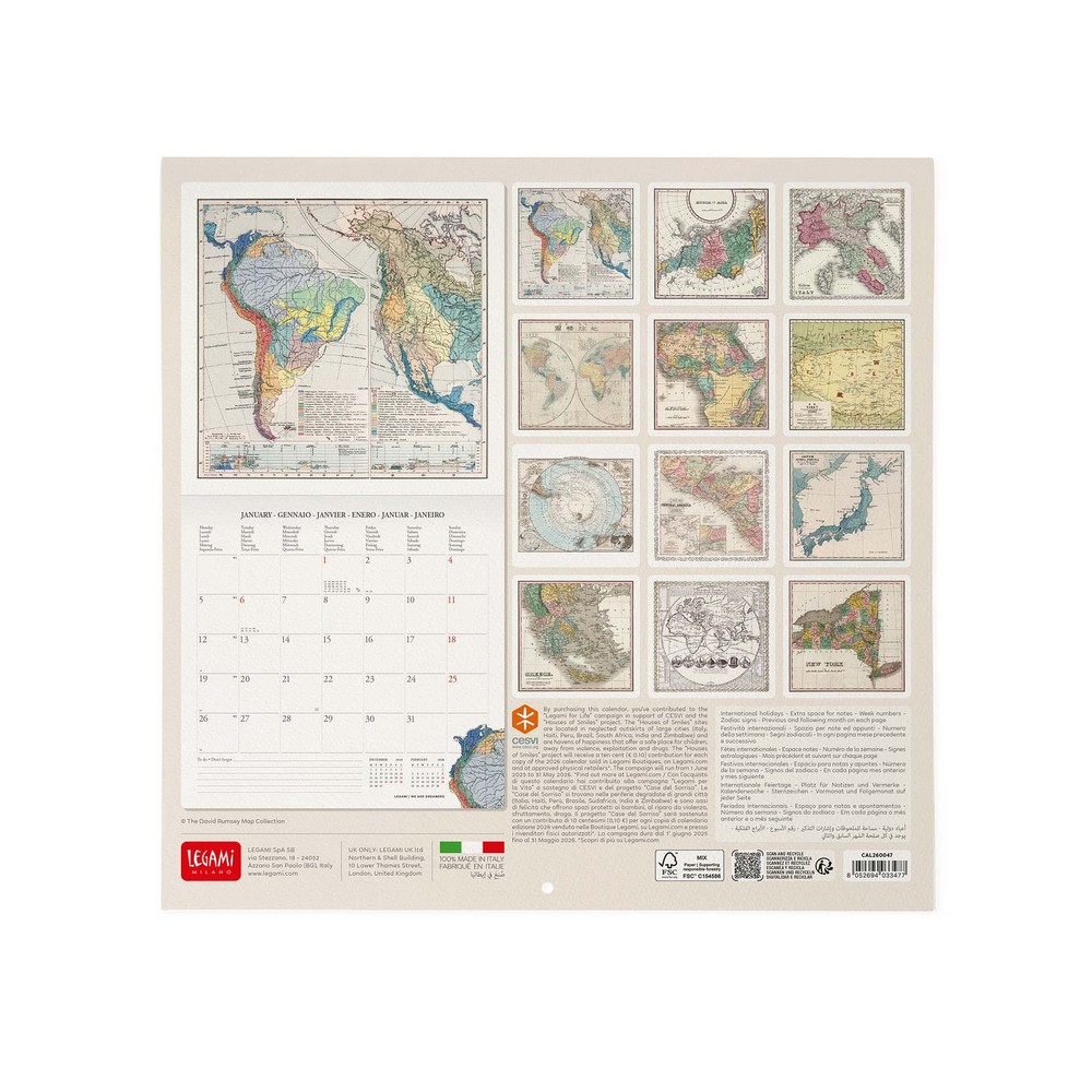 Legami falinaptár, Vintage maps 30x29 cm, 2026