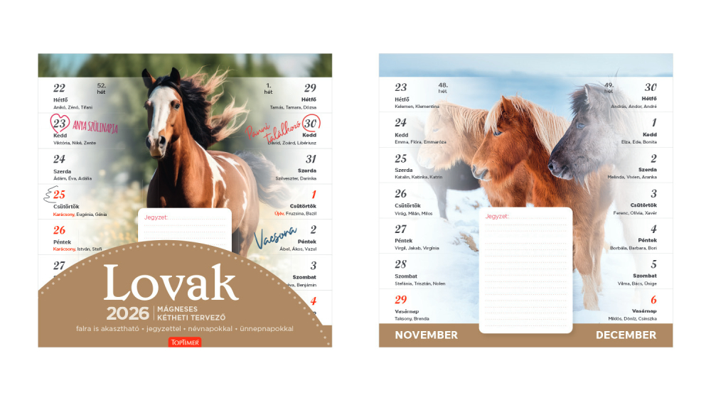 Lovak mágneses falinaptár - 2026