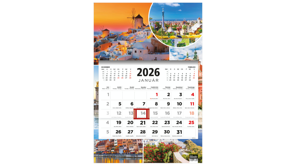 T081 Speditőrnaptár 1 tömbös, Városok hátkartonnal - 2026