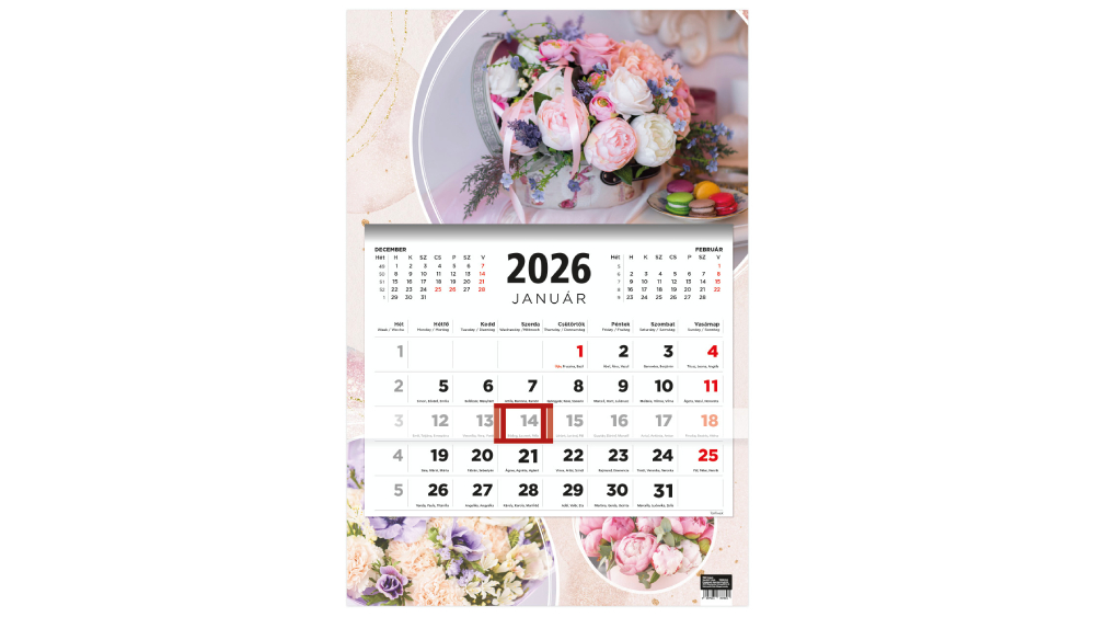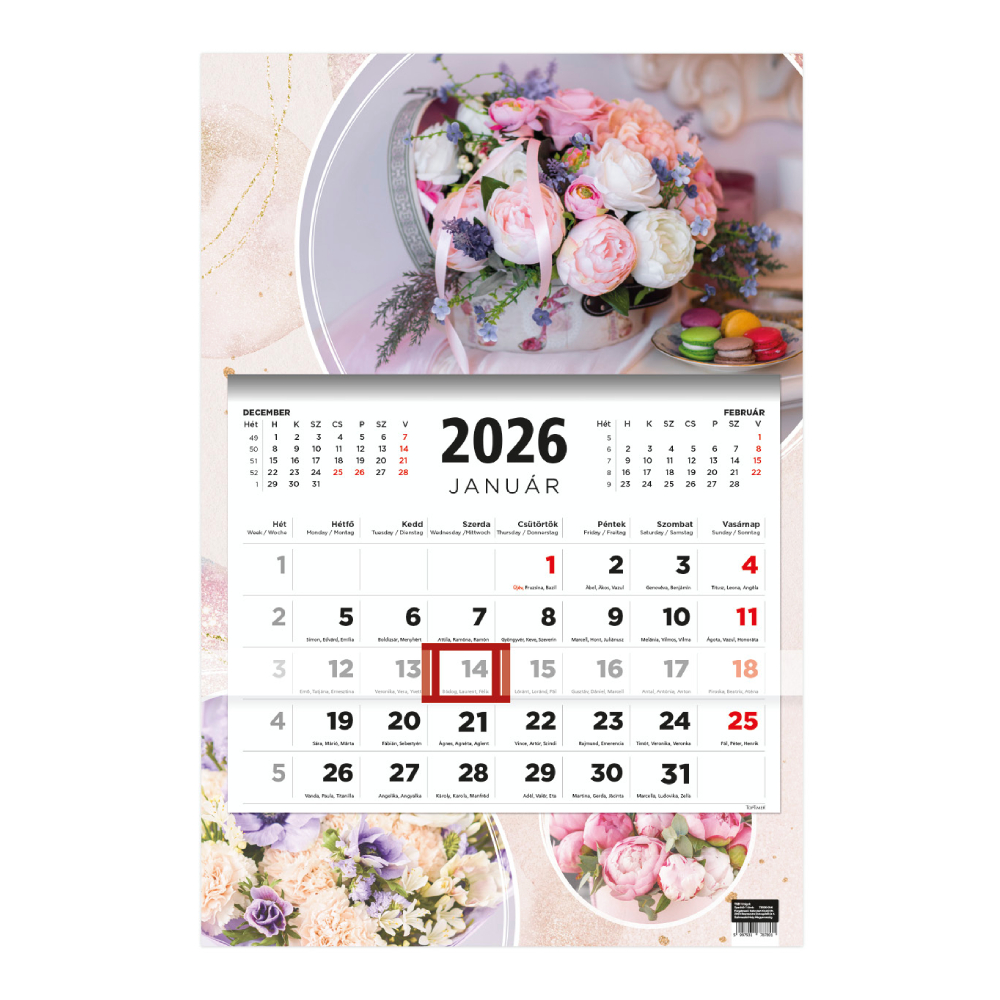 Ez az 3 hónapos naptár tökéletes választás mindazoknak, akik a terveikhez egyszerre 3 hónapot szeretnének látni (az aktuális hónap névnapokkal). A naptárban egyértelműen láthatja a fontos dátumokat, eseményeket és határidőket, így könnyedén megtervezheti a teendőit.