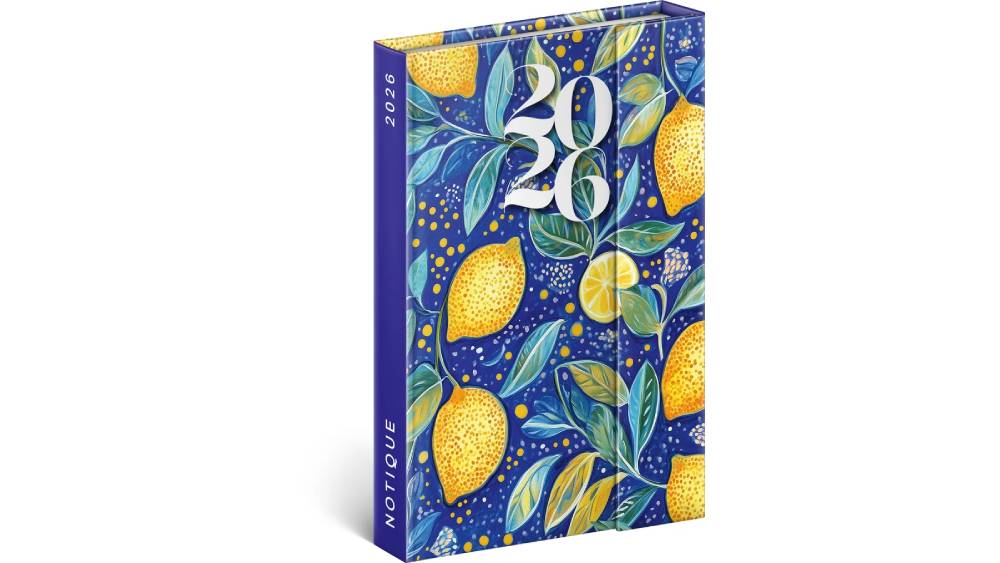 Reálszisztéma Heti beosztású, mágnessel záródó határidőnapló, 10,5 x 15,8 cm Lemons (2026)