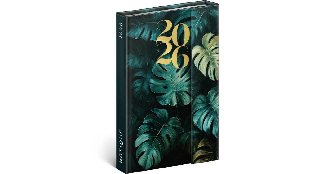 Reálszisztéma Heti beosztású, mágnessel záródó határidőnapló, 10,5 x 15,8 cm Monstera (2026)