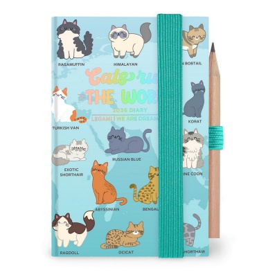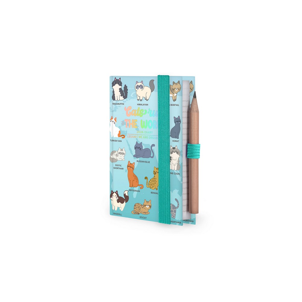Legami határidőnapló, mini, 6.5x10 cm, kétnapi, cicás, 2026