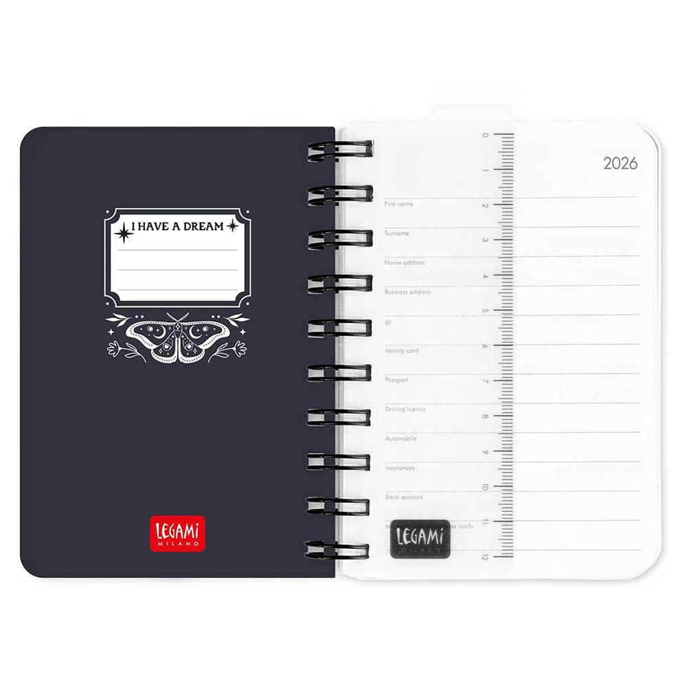 Legami határidőnapló, 8.5x13 cm, spirálos, napi, The Magic