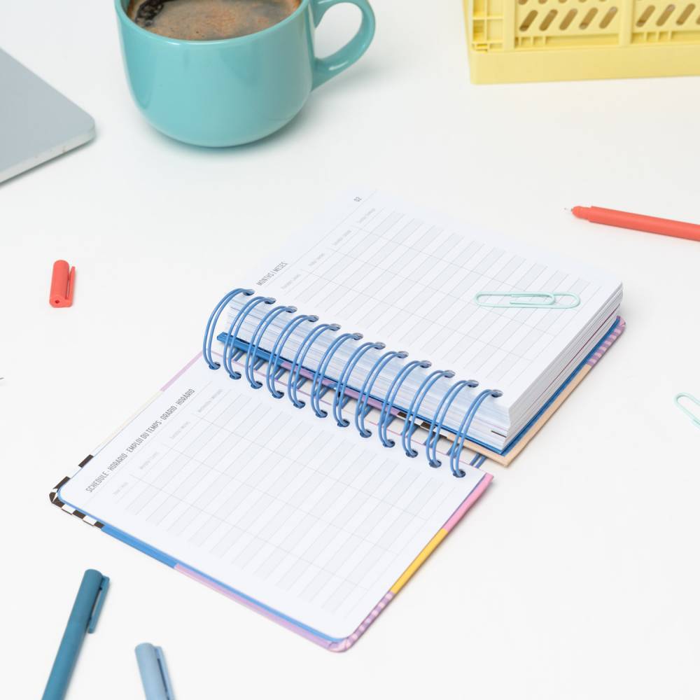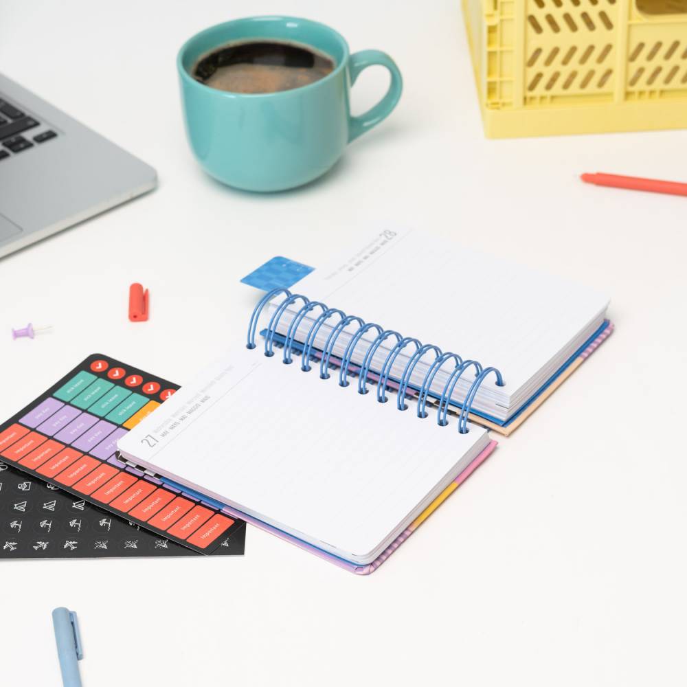 - Kemény borító, dupla spirálkötés, rugalmas, záró gumiszalag