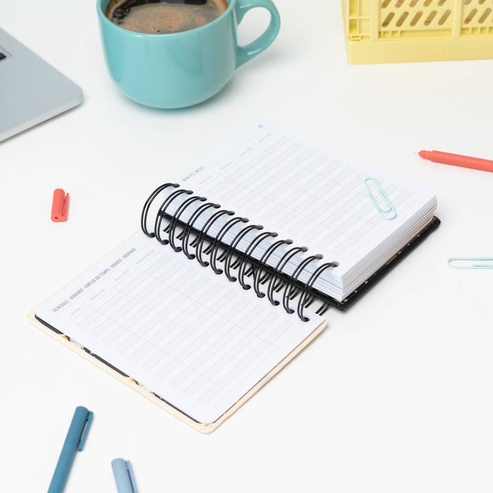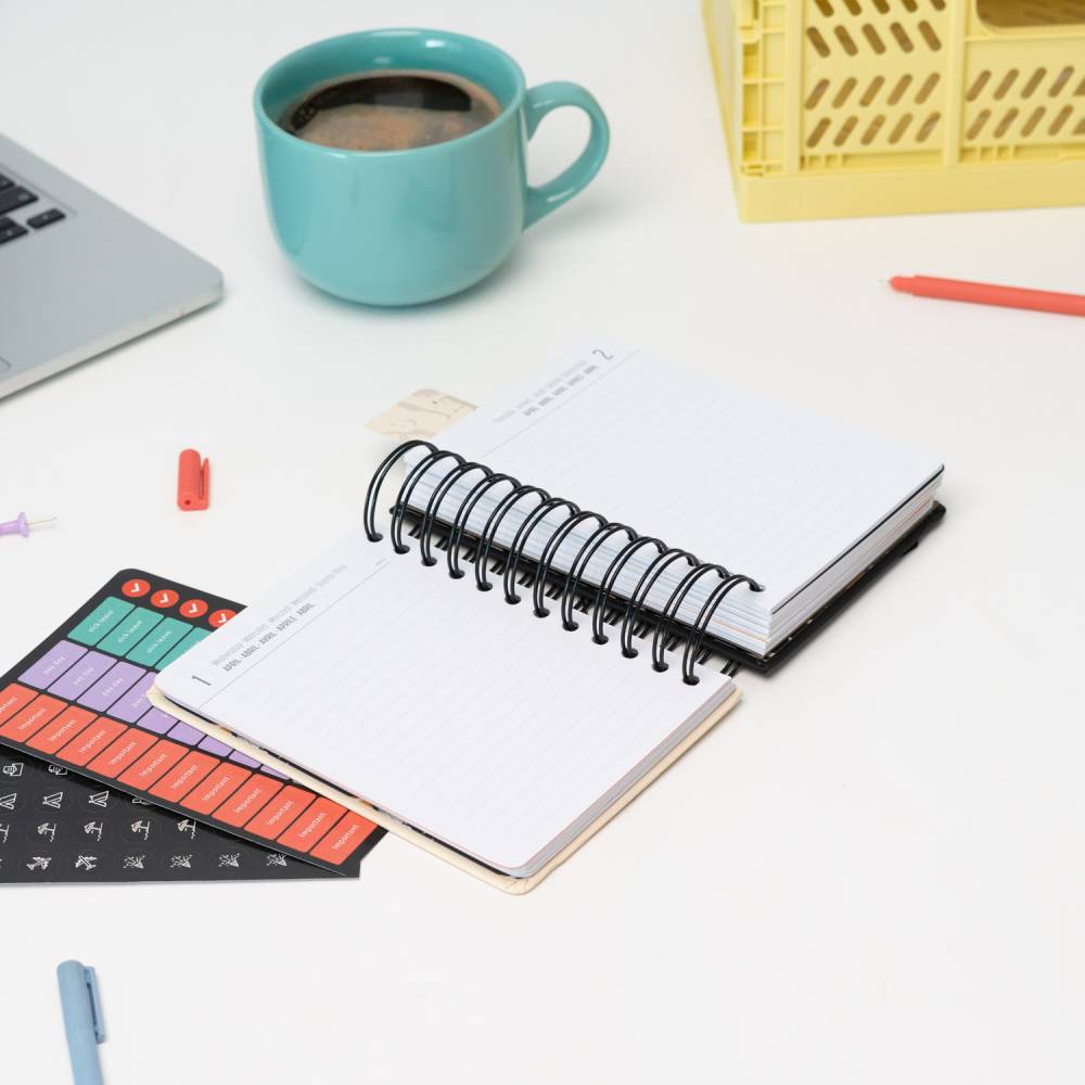 - Kemény borító, dupla spirálkötés, rugalmas, záró gumiszalag