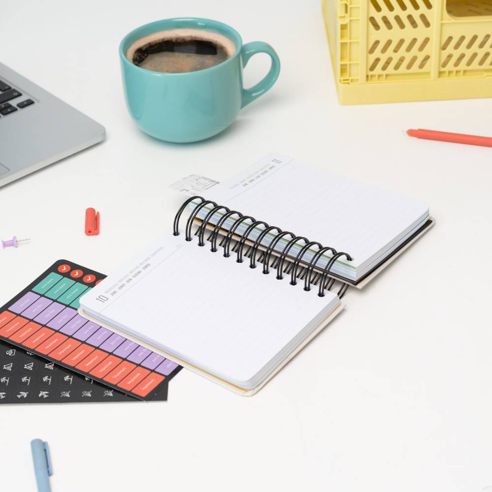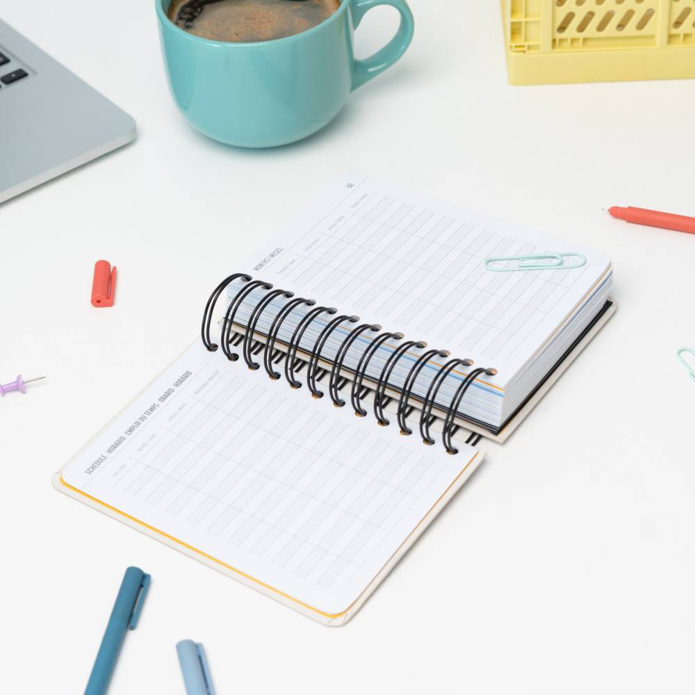 - Kemény borító, dupla spirálkötés, rugalmas, záró gumiszalag