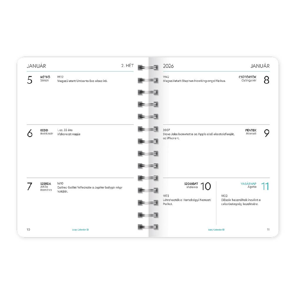 Lizzy Heti Tervező B6 Spirál 2026 FREE TIME