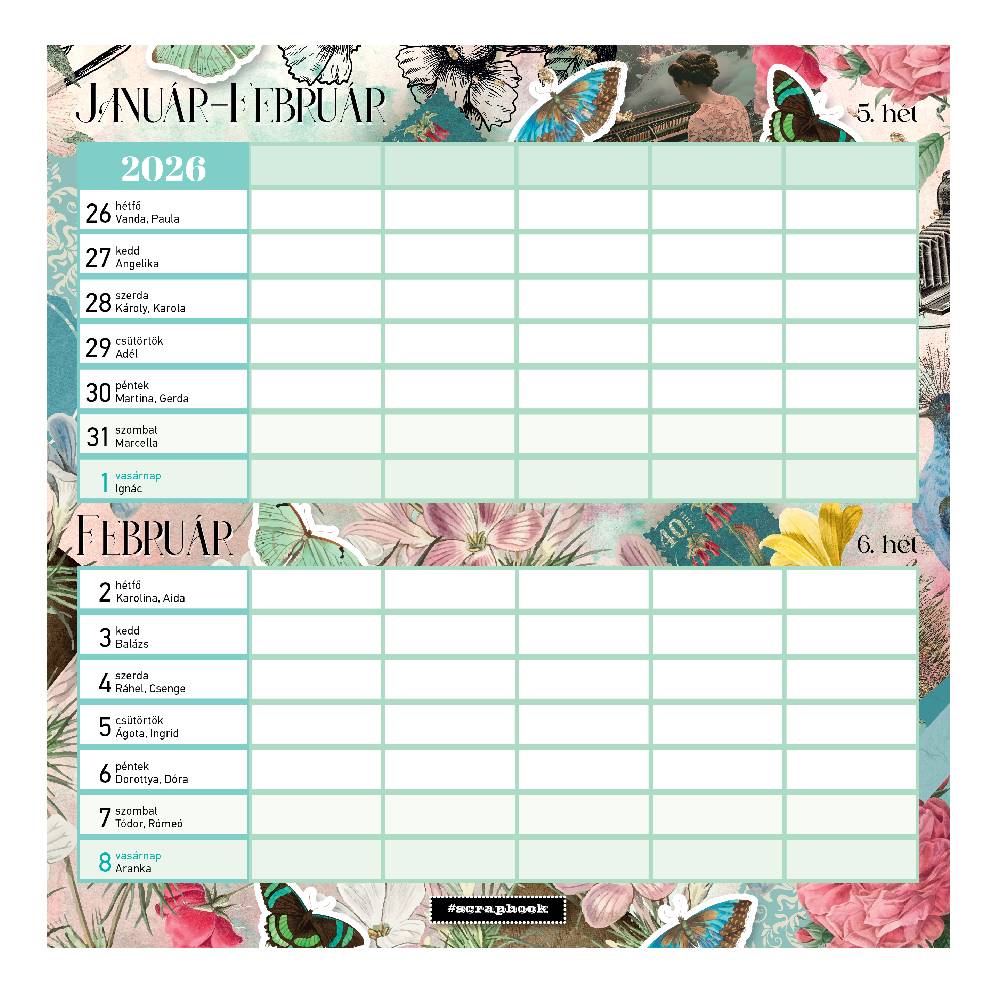 Lizzy Hűtőmágneses naptár 2 heti 2026 Anyu tervezője Scrapbook Style