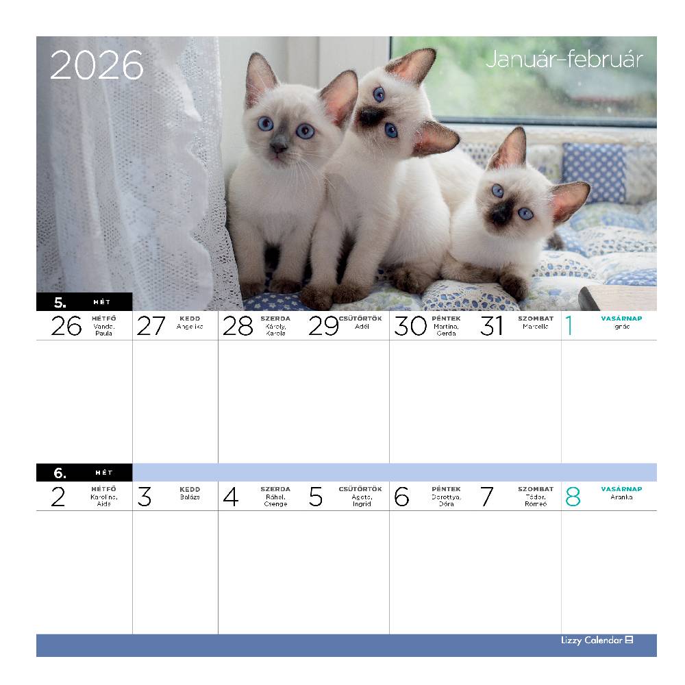 Lizzy Hűtőmágneses naptár 2 heti 2026 Cicák