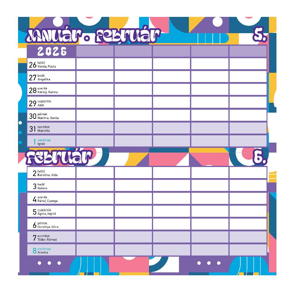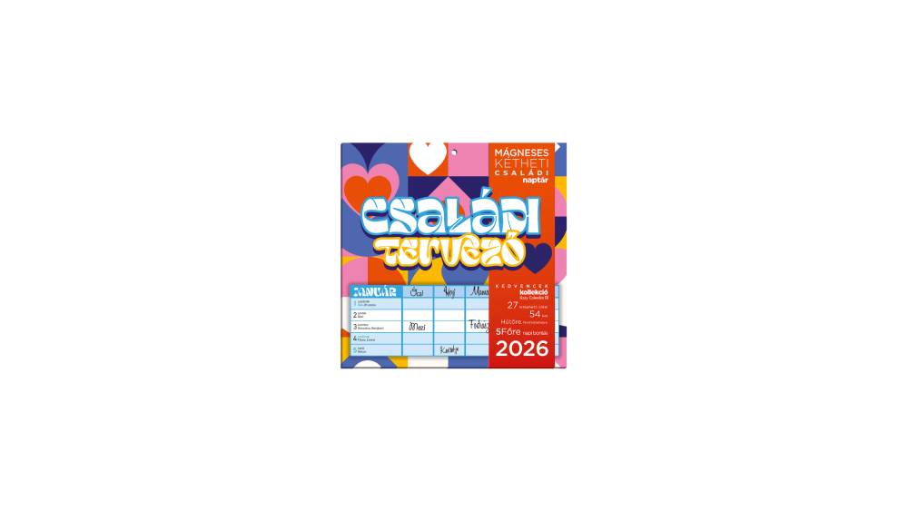 Lizzy Hűtőmágneses naptár 2 heti 2026 Családi tervező