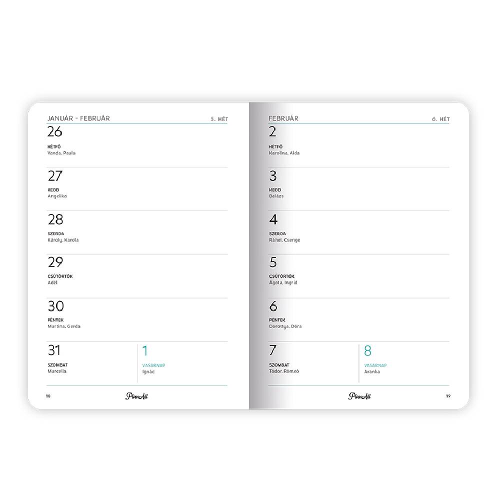 B6 méretű aranyozott, heti bontású zsebnaptár