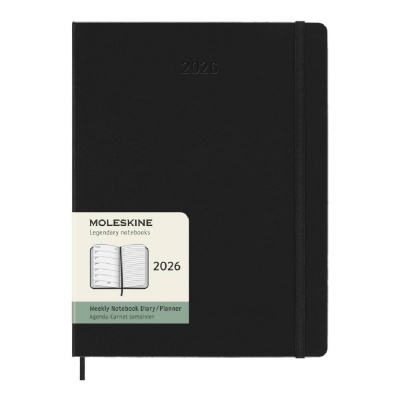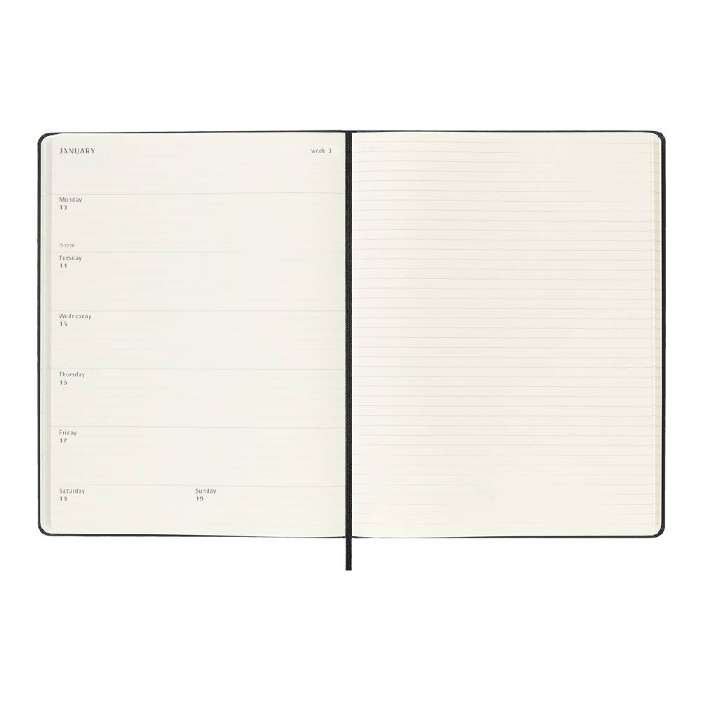 MOLESKINE Határidőnapló 2026 12 hónap, Heti, kemény borító, FEKETE (XL)