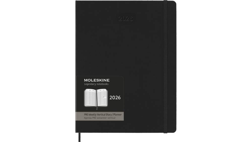 MOLESKINE Határidőnapló 2026 12 hónap, PRO Heti, kemény borító, FEKETE (XL)