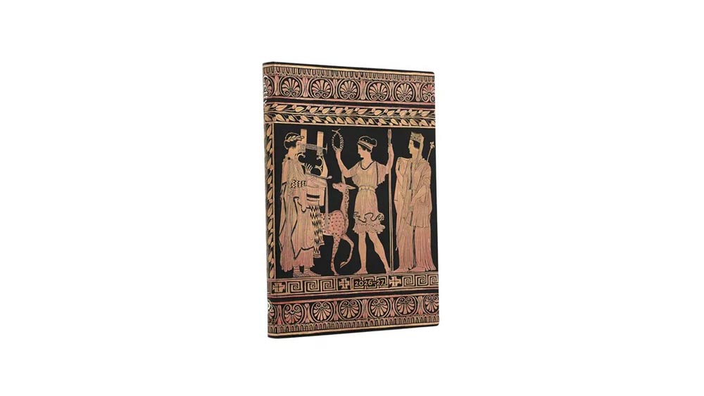 A napló borítóján egy antik görög (Kr.e 4. század), vörösalakos váza jeleneteiből láthatók részletek.