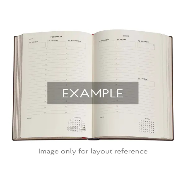 A vertikális/függőleges lapbeosztásban minden dupla oldalon egy hét található, a jobb sarokban egy-egy kis, összesítő naptárral.