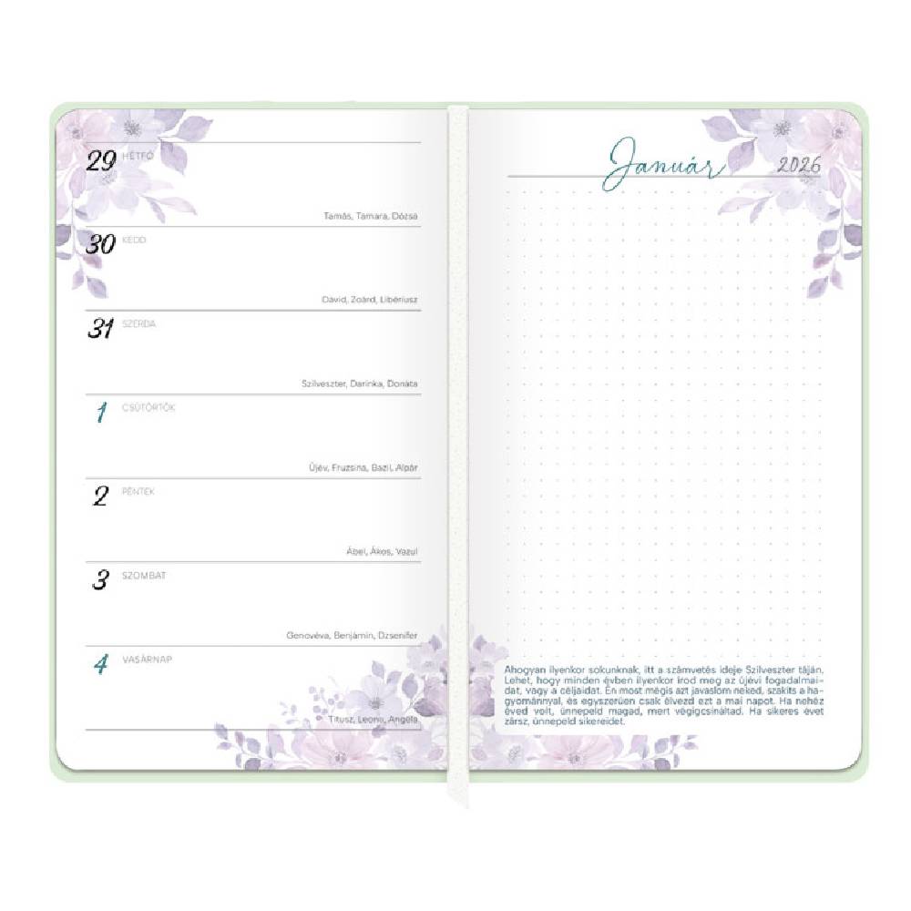- Tervezze meg a 2026-os évet stílusosan ezzel az elegáns, heti beosztású határidőnaplóval, ami nem csak az időpontok rendszerezésében segít, hanem elgondolkodtató felvetésekkel is támogatja a mindennapokat