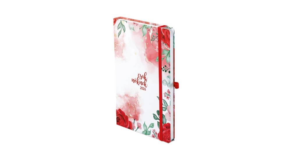 TopTimer Határidőnapló 2026, 018J Női naptár A5 (Heti beoszt.) PIROS VIRÁG