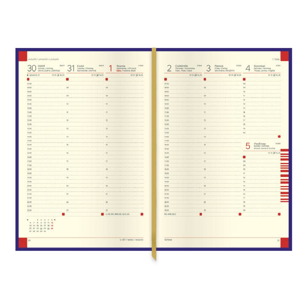 - A praktikus B5 méret kényelmesen elfér táskában vagy aktatáskában, ugyanakkor bőséges helyet biztosít a mindennapi jegyzeteknek, időpontoknak és teendőknek