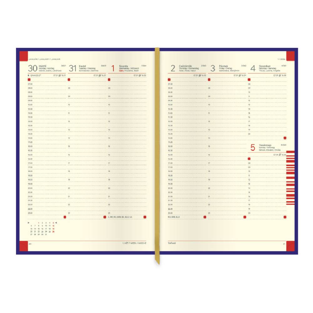 - A praktikus B5 méret kényelmesen elfér táskában vagy aktatáskában, ugyanakkor bőséges helyet biztosít a mindennapi jegyzeteknek, időpontoknak és teendőknek