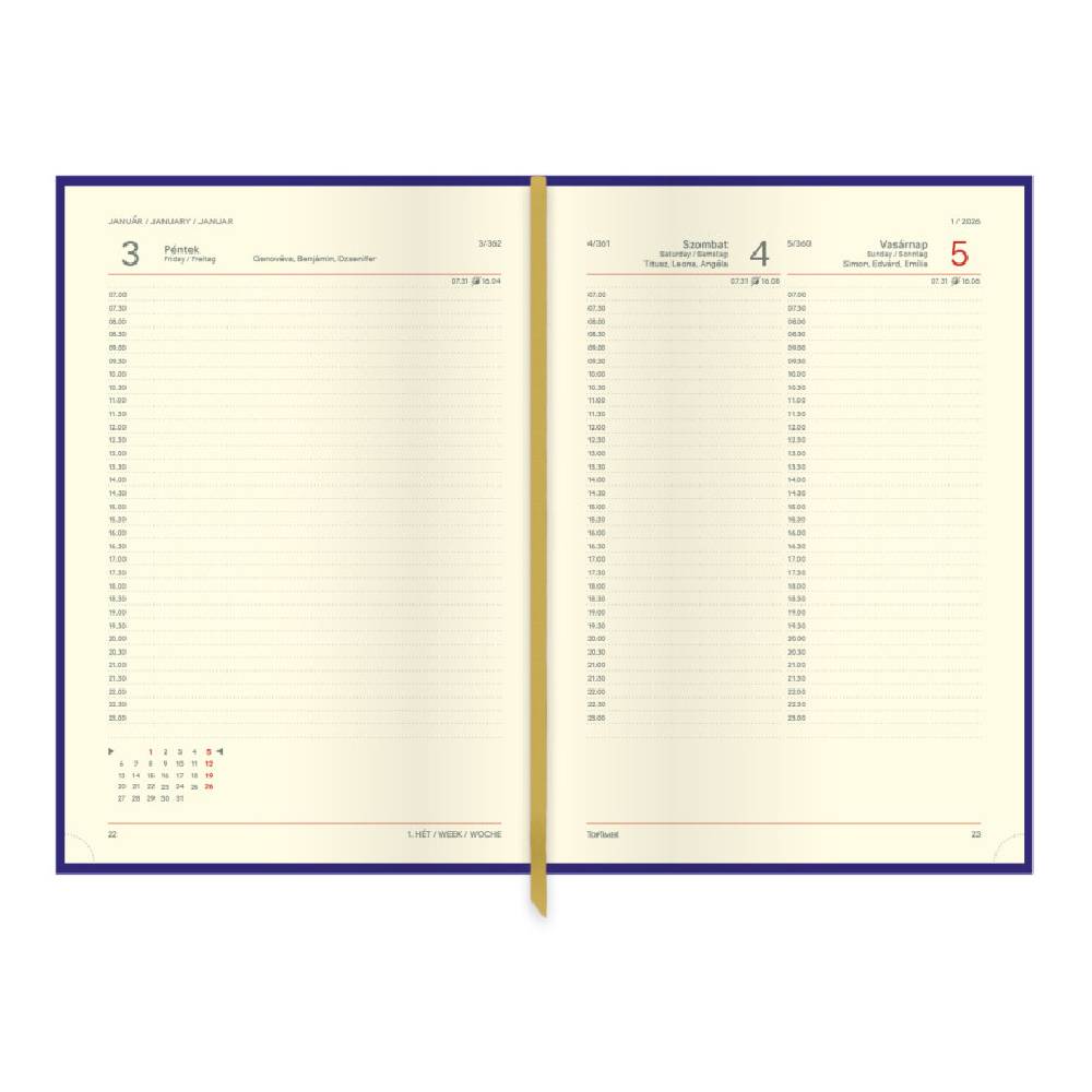 - A praktikus A5 méret kényelmesen elfér táskában vagy aktatáskában, ugyanakkor bőséges helyet biztosít a mindennapi jegyzeteknek, időpontoknak és teendőknek