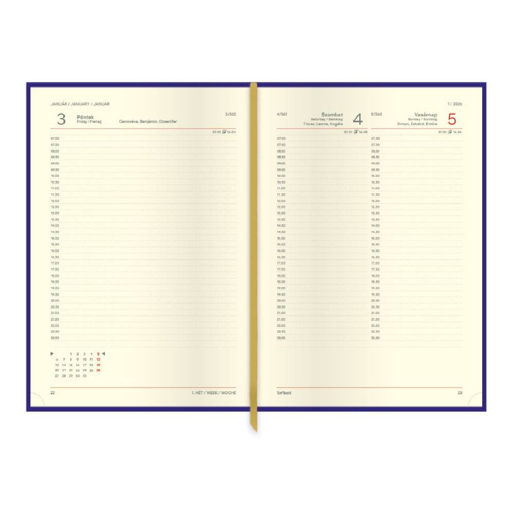 - A praktikus A5 méret kényelmesen elfér táskában vagy aktatáskában, ugyanakkor bőséges helyet biztosít a mindennapi jegyzeteknek, időpontoknak és teendőknek