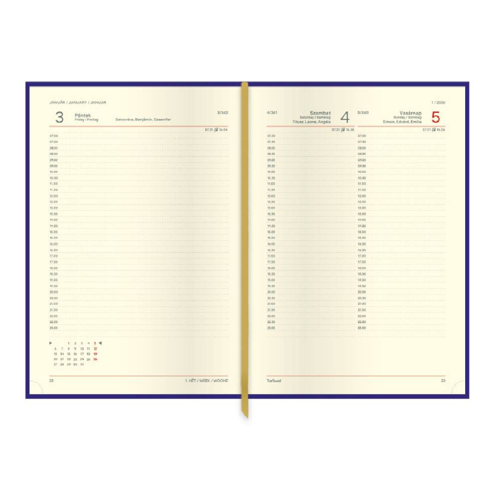 - A praktikus A5 méret kényelmesen elfér táskában vagy aktatáskában, ugyanakkor bőséges helyet biztosít a mindennapi jegyzeteknek, időpontoknak és teendőknek