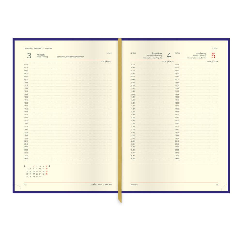 - A praktikus A5 méret kényelmesen elfér táskában vagy aktatáskában, ugyanakkor bőséges helyet biztosít a mindennapi jegyzeteknek, időpontoknak és teendőknek