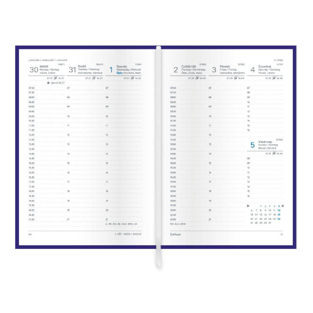 - Hajlékony, fóliázott színes borítóval készült B6 heti naptár