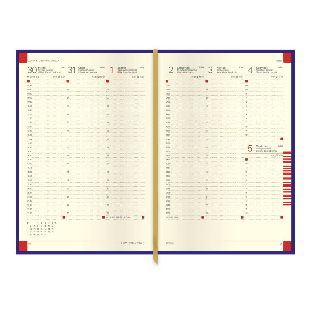 - A praktikus B5 méret kényelmesen elfér táskában vagy aktatáskában, ugyanakkor bőséges helyet biztosít a mindennapi jegyzeteknek, időpontoknak és teendőknek