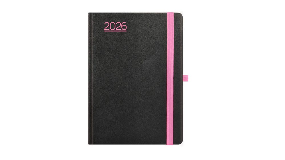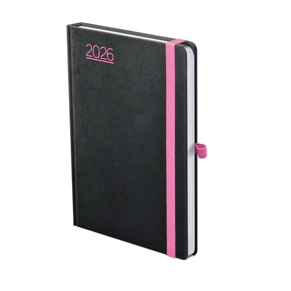 TopTimer határidőnapló, 2026, N021, A5, napi beosztás, fekete-pink