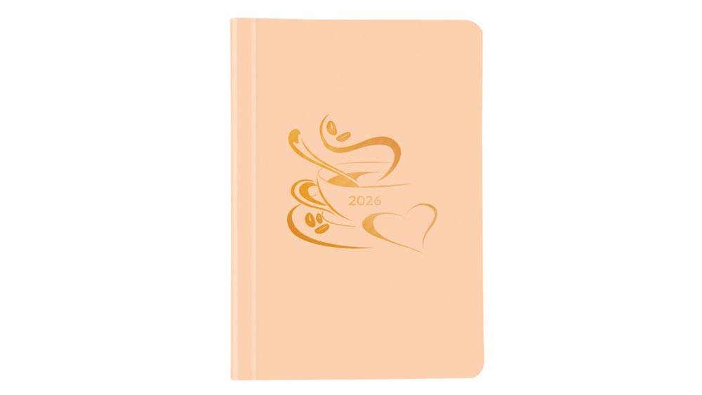 A TopTimer Pastel naptárcsaládja lágy, pasztellszínű borítóval, a fedlapon vonalas rajzokkal készült. A lazacszínű tervező borítóján egy csésze kávé és egy szívecske látható.