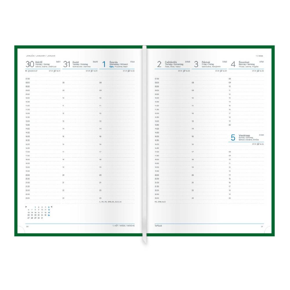 - A Traditional B5 heti beosztású határidőnapló a klasszikus elegancia megtestesítője