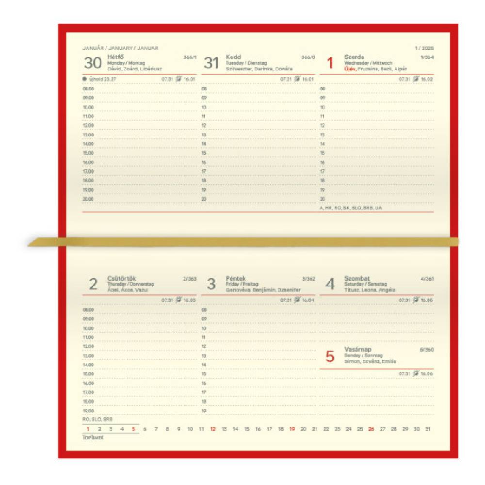 - A kompakt méret kényelmesen elfér zsebedben vagy táskában, ugyanakkor elegendő helyet kínál a heti beosztásos feljegyzésekhez
